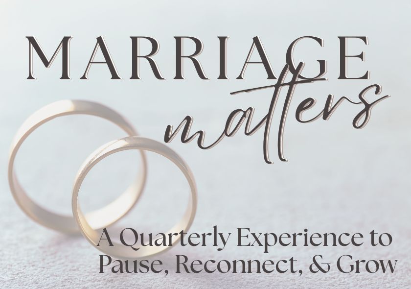 Marriage Matters is a quarterly experience designed to help couples pause, reconnect, and grow together in meaningful ways. Marriage is one of life’s greatest blessings, and it thrives when couples intentionally invest time, attention, and care into their relationship.